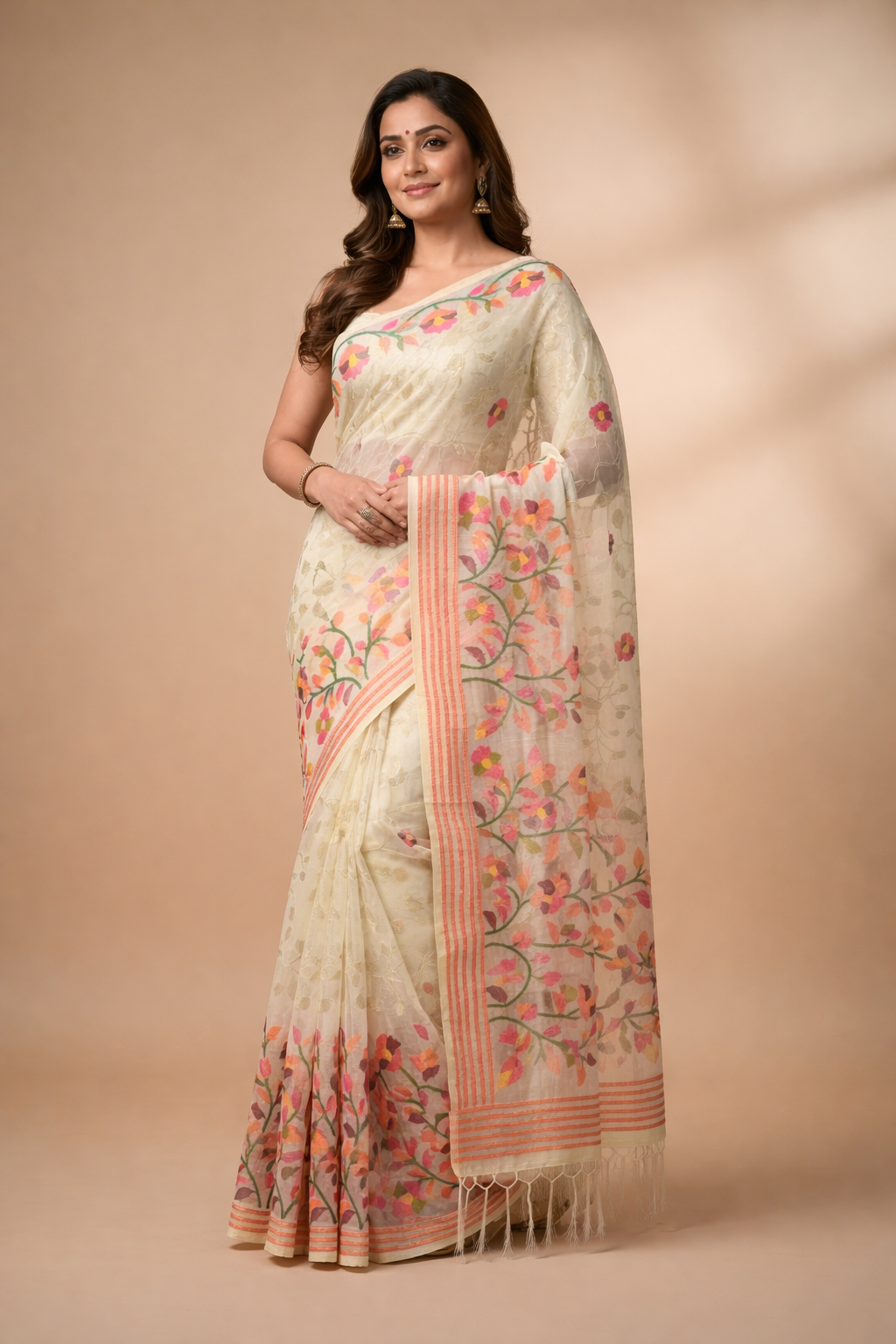 Handwoven from pure cotton, this Kota Doria saree exemplifies traditional Indian textile craftsmanship. The lightweight fabric features the signature open weave characteristic of Kota Doria, offering breathability ideal for warm climates. Each piece showcases intricate patterns created through meticulous handloom techniques, blending heritage artistry with contemporary appeal. The natural cotton composition ensures comfort for extended wear, while the delicate weave provides an elegant drape. Perfect for fest
