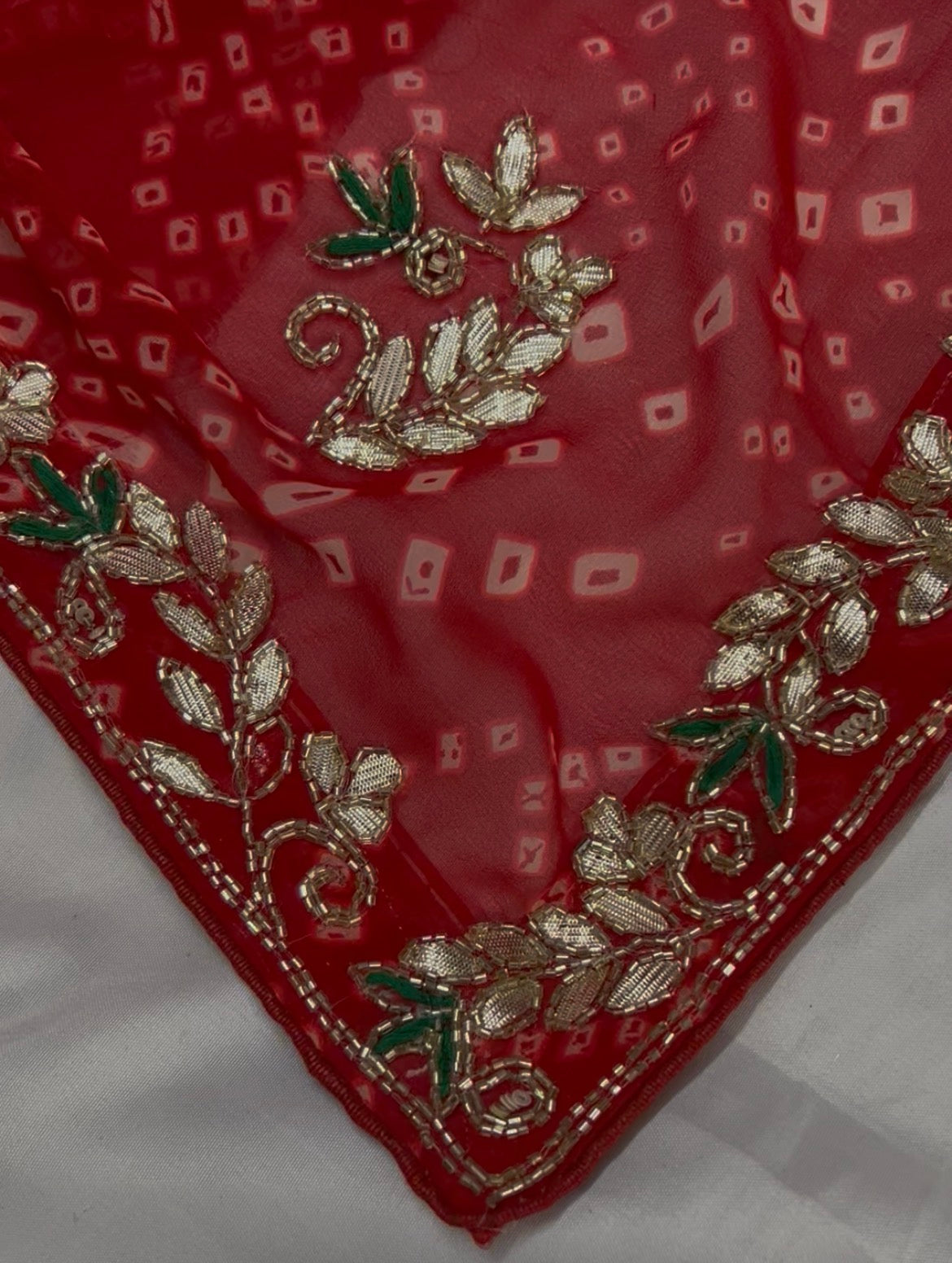 Pure Chunari Gotta Tubelight Work Saree Elevate your ethnic wardrobe with this exquisite pure chunari saree, meticulously crafted with traditional gotta work and contemporary tubelight embellishments. The intricate gotta detailing showcases masterful artisanship, while the tubelight work adds a luminous dimension that catches light beautifully. Woven from premium chunari fabric, this saree drapes with grace and offers the comfort of natural fibers without compromising on luxury. Perfect for festive occasions, weddings, and celebrations where refined elegance is paramount. The rich color palette and gold-accented embroidery reflect timeless sophistication, making this piece a treasured addition to any discerning collector's collection.